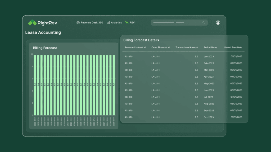 Since RightRev now runs ASC 842 + ASC 606 and IFRS 16 + IFRS 15 in one engine, billing and revenue forecasts finally come from the same source, updated automatically, accurate instantly, and aligned with accounting reality.